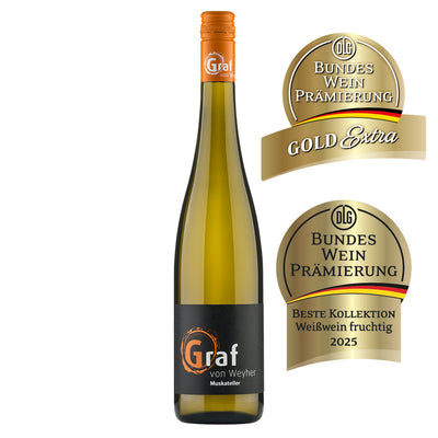Die erste PiWi-Rebsorte, die je entwickelt wurde! Zukunftsweisend resistent, erfrischend anders! Bereits zum 5. Mal in Folge ausgezeichnet als »pioneers of wine«. Das Weingut Graf von Weyher war eines der drei ersten Weingüter weltweit, welches diese neue Sorte anbauen durfte. Im Geschmack würzig aromatisch mit intensiven exotischen Fruchtaromen.